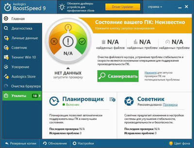 AusLogics BoostSpeed 9.1 - лучшая программа для оптимизации и ускорения работы компьютера, а также увеличения скорости интернета. Утилита BoostSpeed 9 очистит систему от устаревших файлов, оптимизирует оперативную память, ускорит загрузку и работу Windows, а также ускорит работу интернета. Программа полностью тестирует систему, сообщая о необходимости оптимизации в различных областях. AusLogics BoostSpeed отличается огромным количеством приложений для ускорения системы, а также приятным и удобным интерфейсом. Программа подходит для операционных систем Windows 10 / 8.1 / 7 / Vista / XP. | |