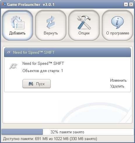 Game Prelauncher 3 - оптимизатор системы Windows для лучшей работы компьютерных игр. Превращает Windows в игровую платформу, в которой все ресурсы компьютера отдаются только игре. Для достижения данного эффекта, Game Prelauncher отключает большинство служб-сервисов, кроме критических, отключает все автозагружаемые программы, оболочку Explorer и сотни зарегистрированных вместе с ней библиотек, которые не используются для работы игры, звуковые темы и другие объекты. Освобождает около 150 и больше Мб оперативной памяти, уменьшает фрагментацию оперативной памяти, разгружает процессор и файловую систему, увеличивает FPS (кадров в секунду), устраняет рывки во время игры. Создает системную точку восстановления перед использованием. После игры, восстанавливает все обратно. | |