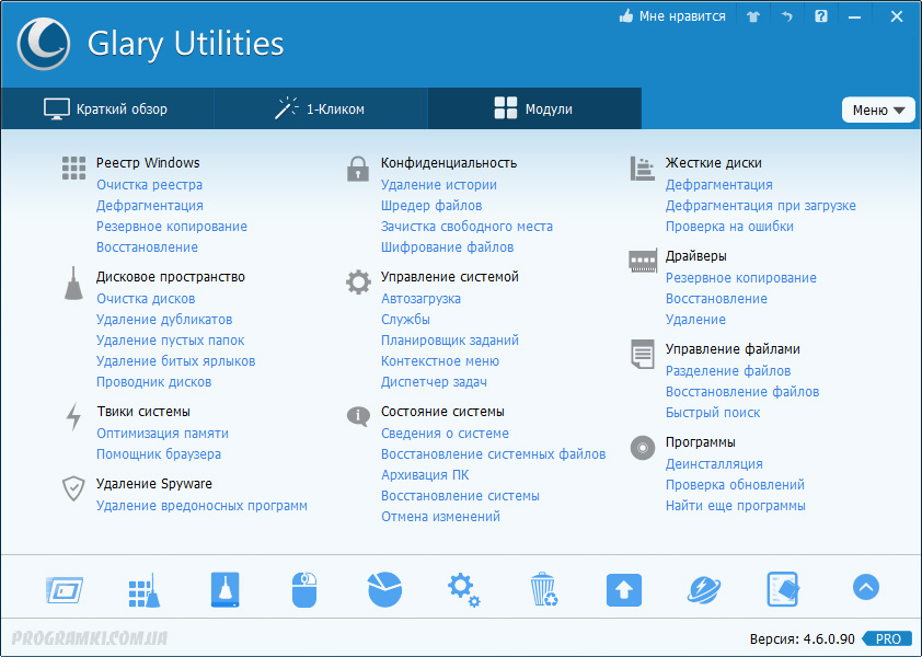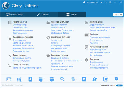 Glary Utilities 5 Pro - полная версия набора утилит для настройки, оптимизации и чистки системы ПК. Программа избавит операционную систему Windows от ненужных файлов, ненужных записей в реестре, очистит браузеры от сохраненных интернет-страниц, а также оптимизирует оперативную память для более быстрой работы компьютера. В наборе утилит Glary Utilities имеются компоненты для управления автозагрузками программ, управления контекстным меню, шифровки и дешифровки файлов, анализа жесткого диска, а также есть свой менеджер процессов. | |