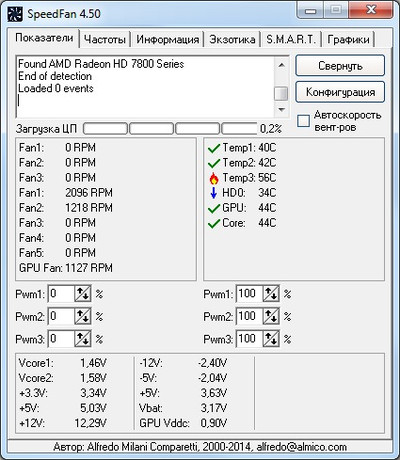 SpeedFan 4.50 - программа для контроля температуры и скорости вентиляторов на компьютере. Данная утилита точно отслеживает скорости вращения кулеров и температуру в ноутбуке или системном блоке компьютера (процессора, видеокарты, блока питания, жесткого диска). Программа позволяет регулировать скорости в зависимости от соответствующих температур. Такая настройка улучшит охлаждение или снизит энергопотребление системы. SpeedFan 4.5 поддерживает практически все чипы мониторинга и работает на всех операционных системах Windows. | |